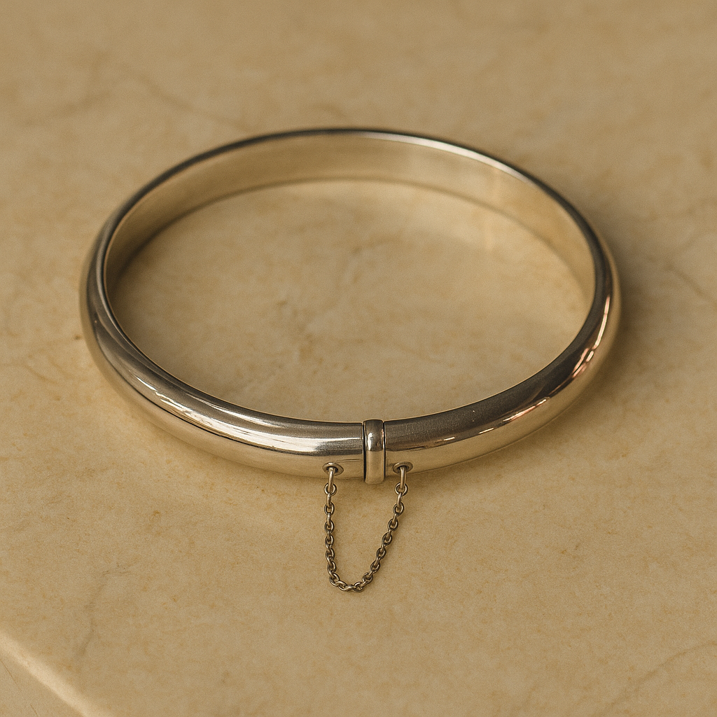 Esclava de plata esterlina 925 de líneas puras y delicadas. Su brillo recuerda la primera luz del día sobre el mar.